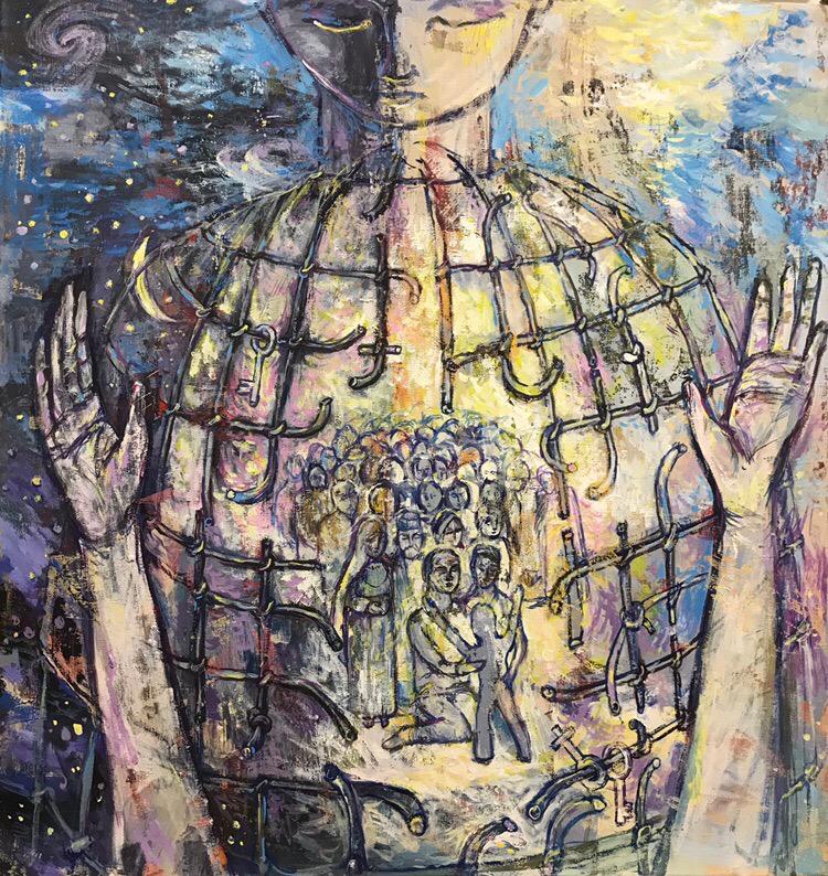 «Мир в глазах смотрящего» 130х100 х.м.акрил (продано)